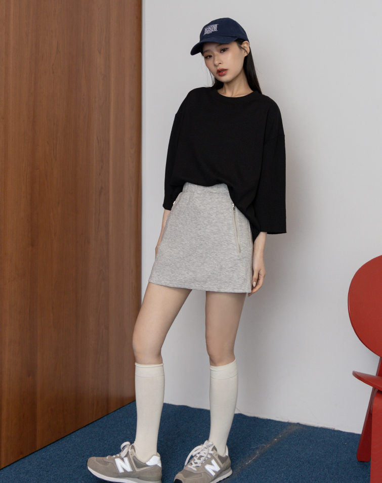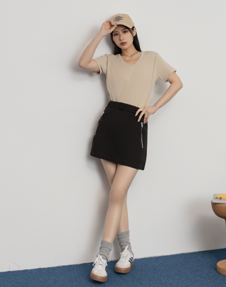 BREEZY COTTON ZIP DETAIL MINI SKIRT
