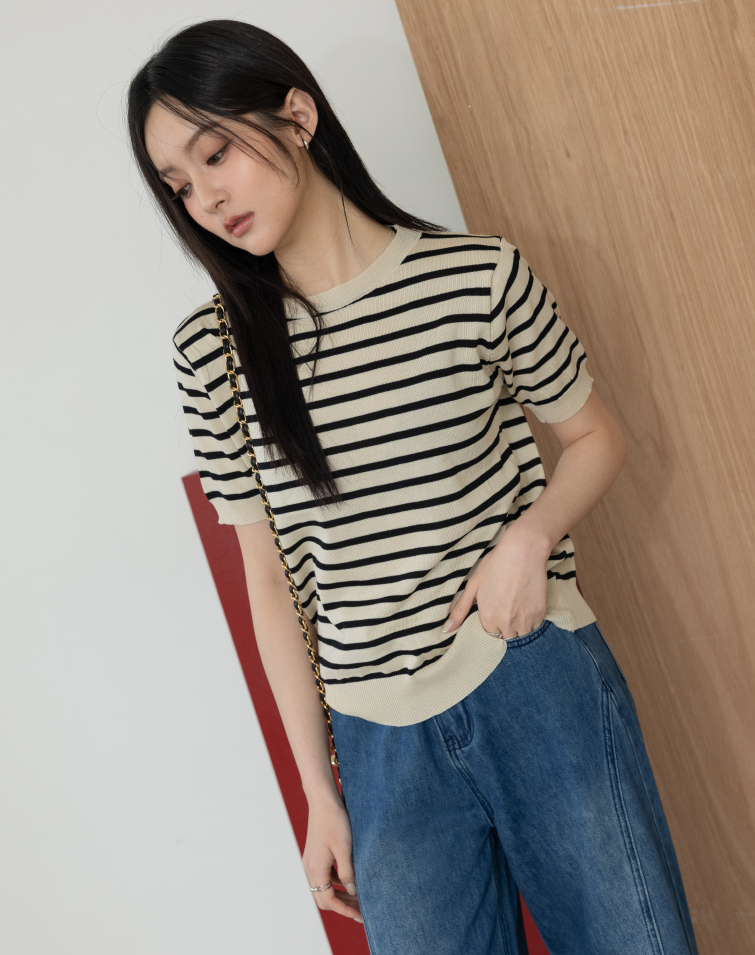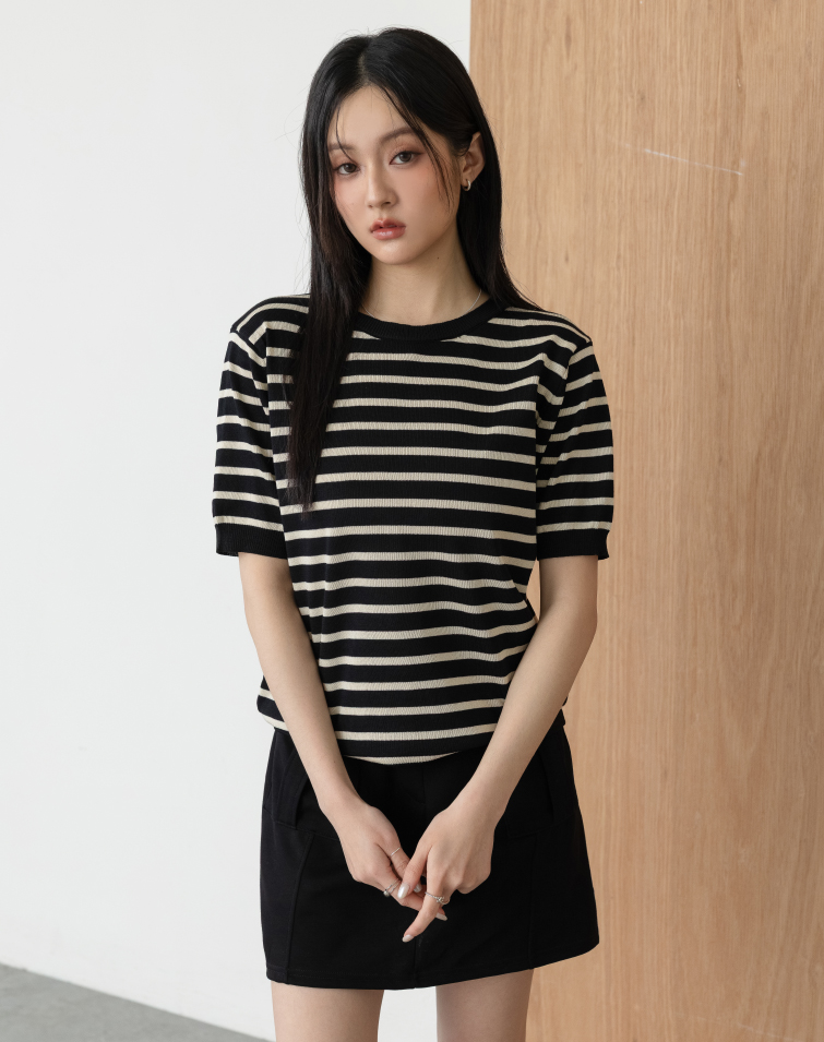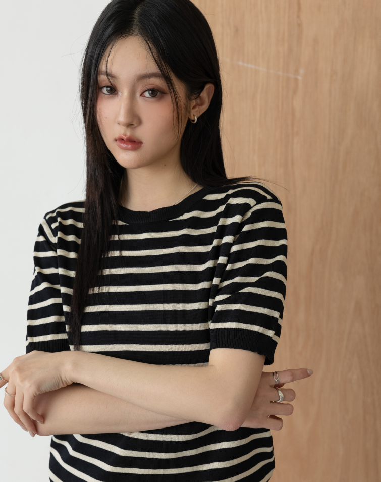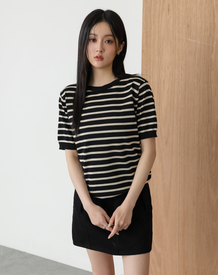 SOFT KNIT STRIPED SHORT SLEEVE TOP