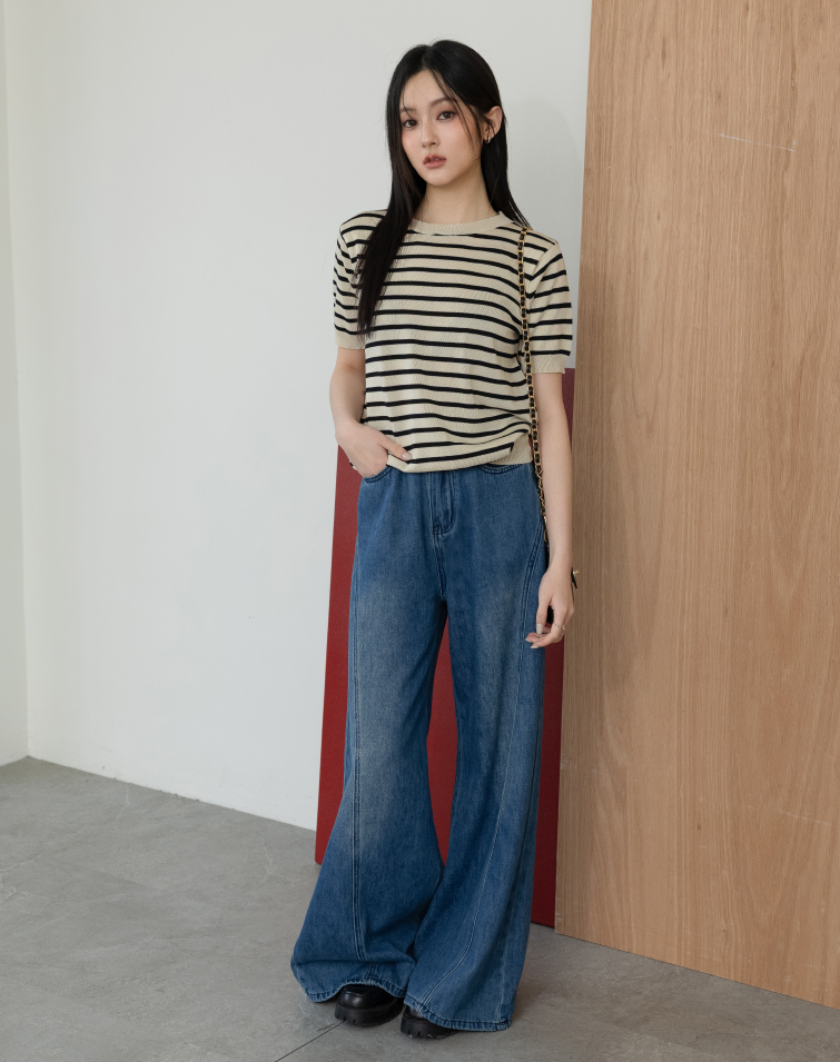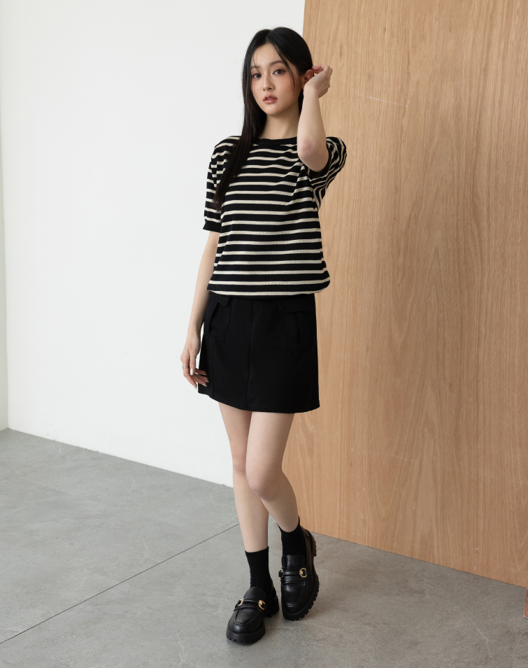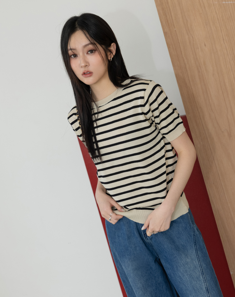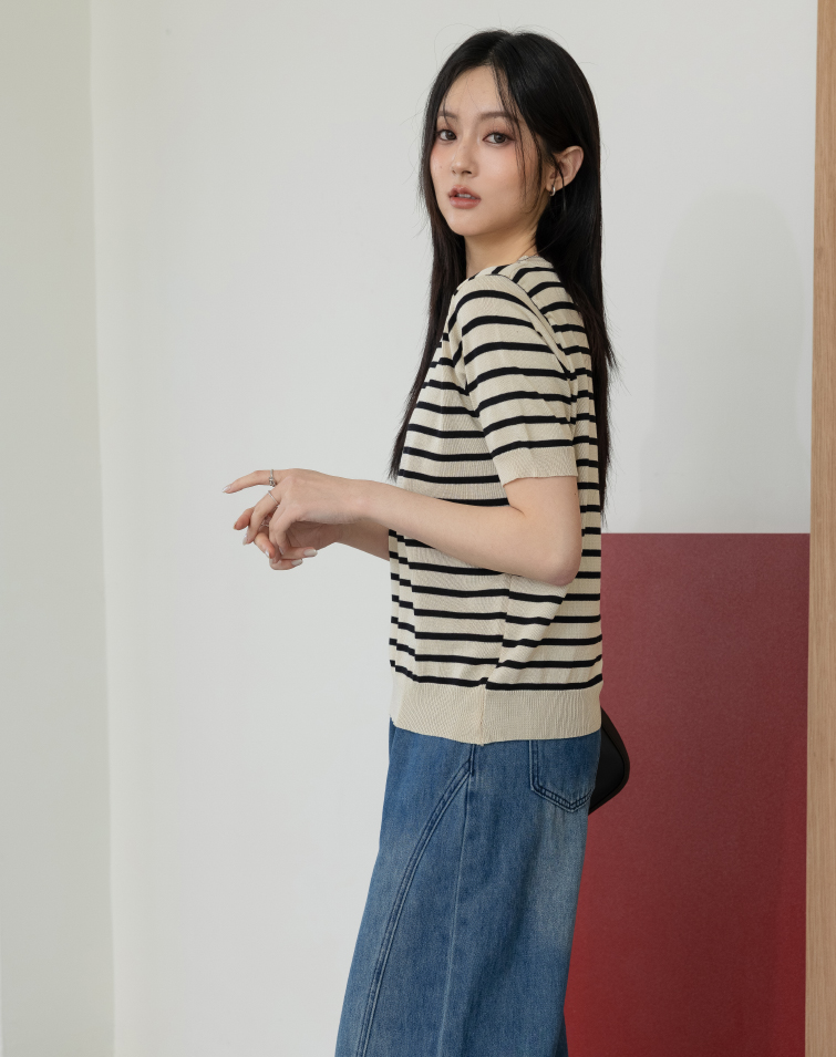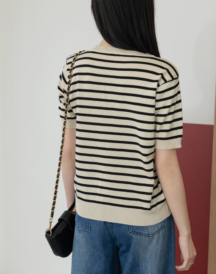 SOFT KNIT STRIPED SHORT SLEEVE TOP