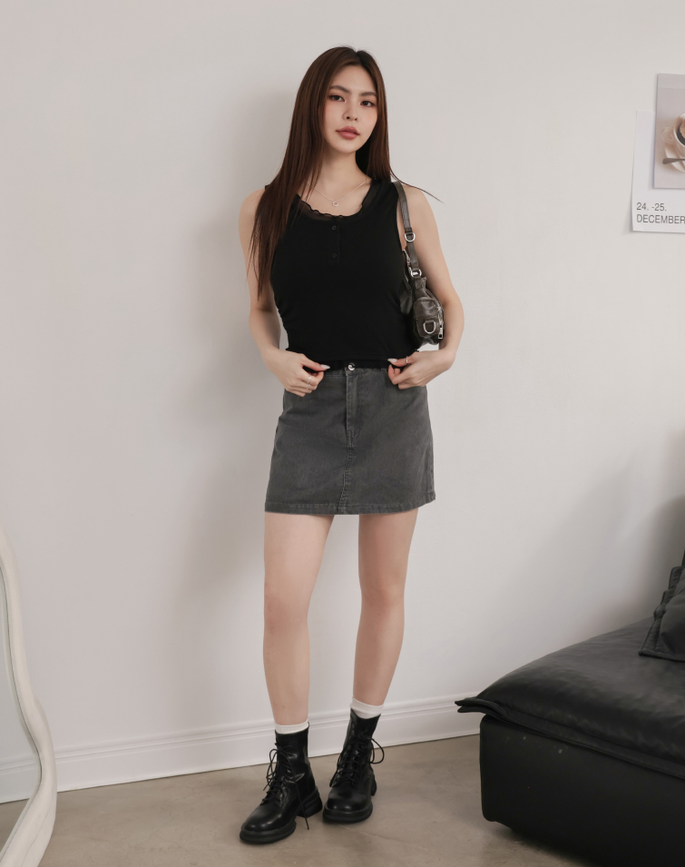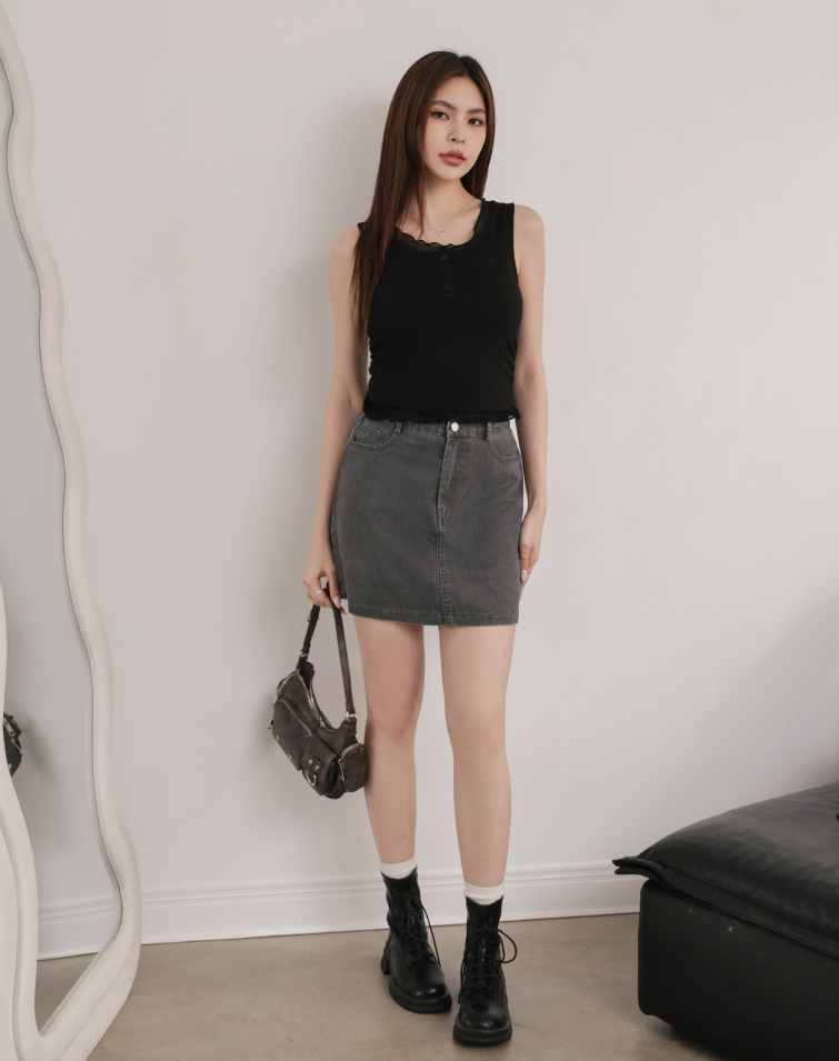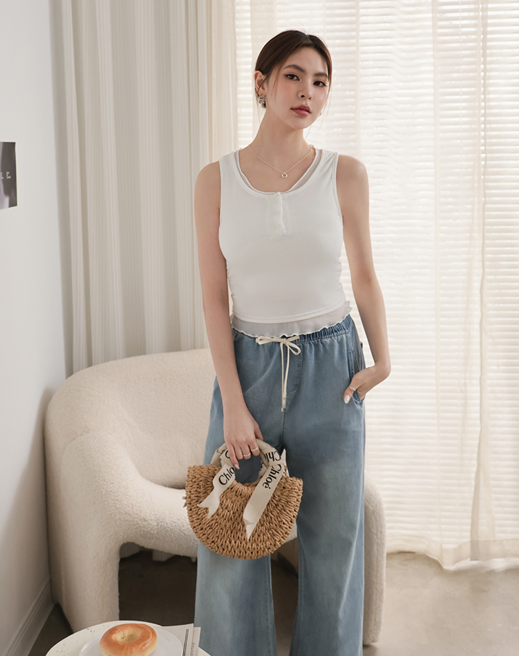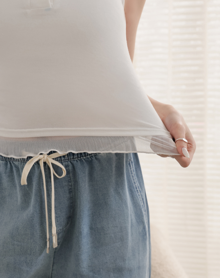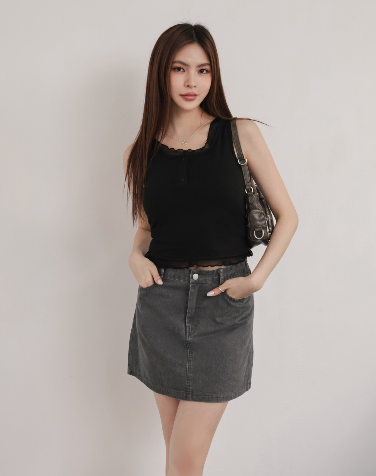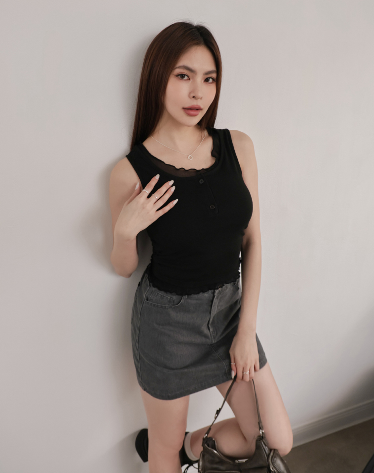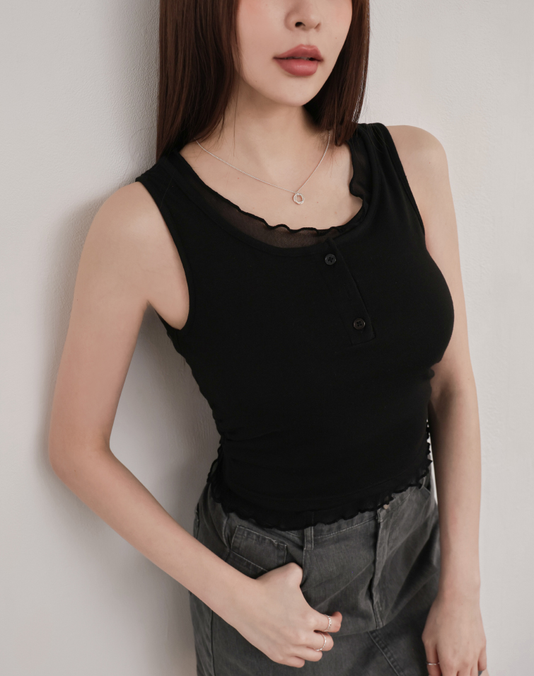 Front Button Detail / Layered Mesh Design / Side Ruched Detail
