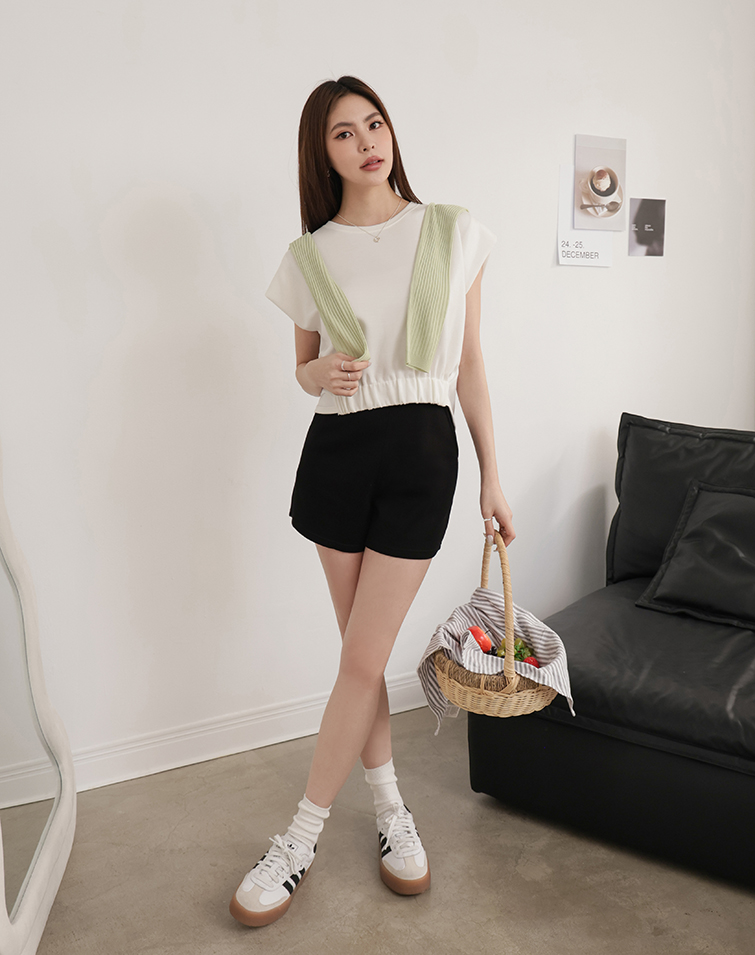 Wing sleeves / Elastic hem band / High-low hem (shorter front, longer back)