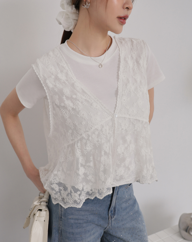 SOFT LACE PEPLUM TWO-PIECE TANK TOP