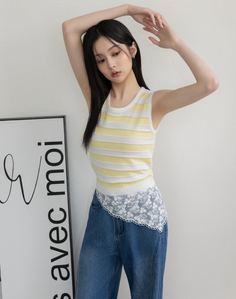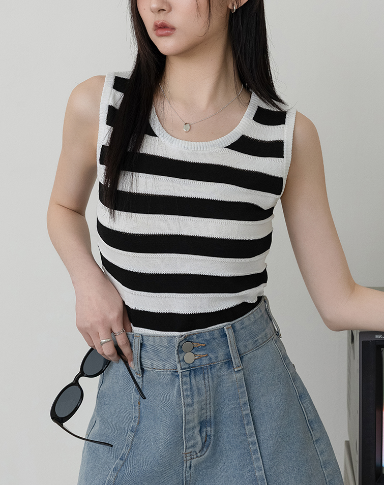 COLOEBLOCK STRIPED SOFT KNIT VEST