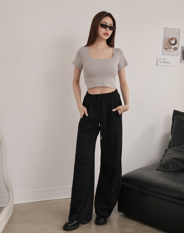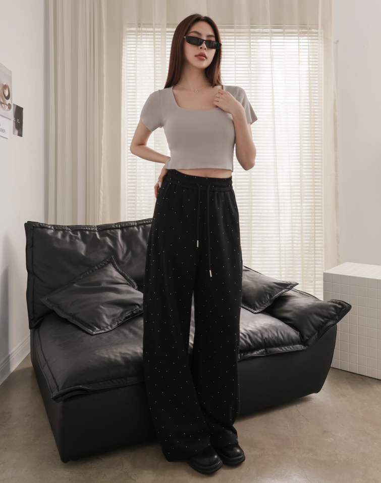 Full Elastic Waistband / Loose Fit & Flattering / Subtle Crystal Detailing