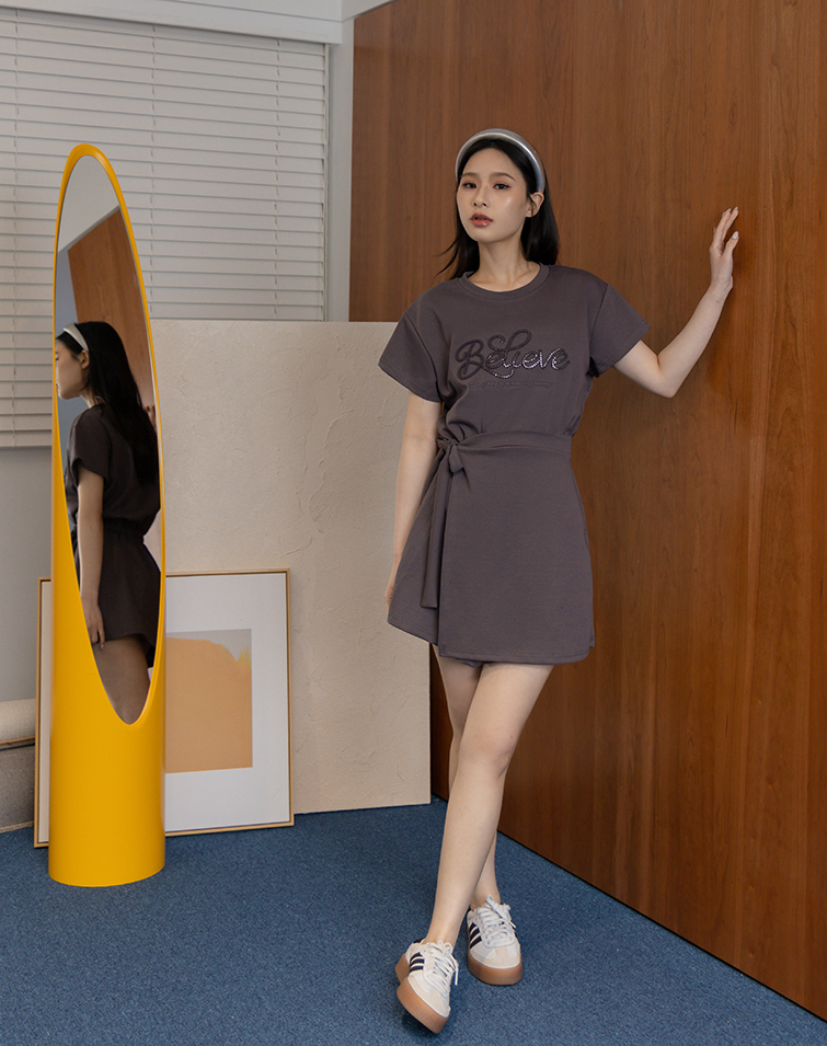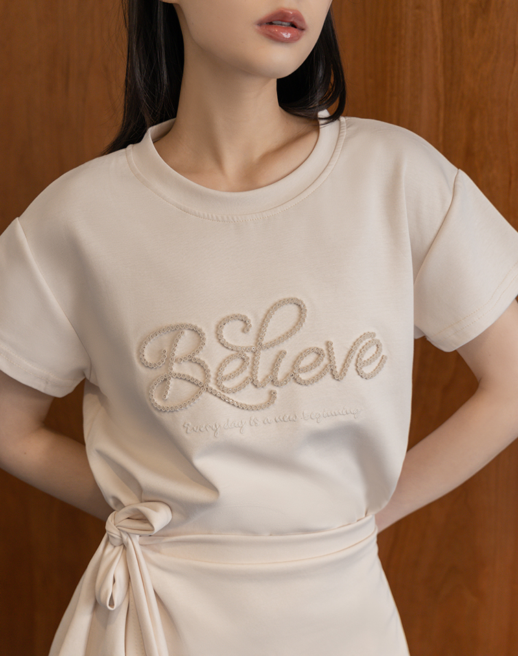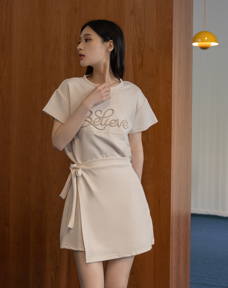 3D Lettering / Elastic Back Waist / Side Tie waist