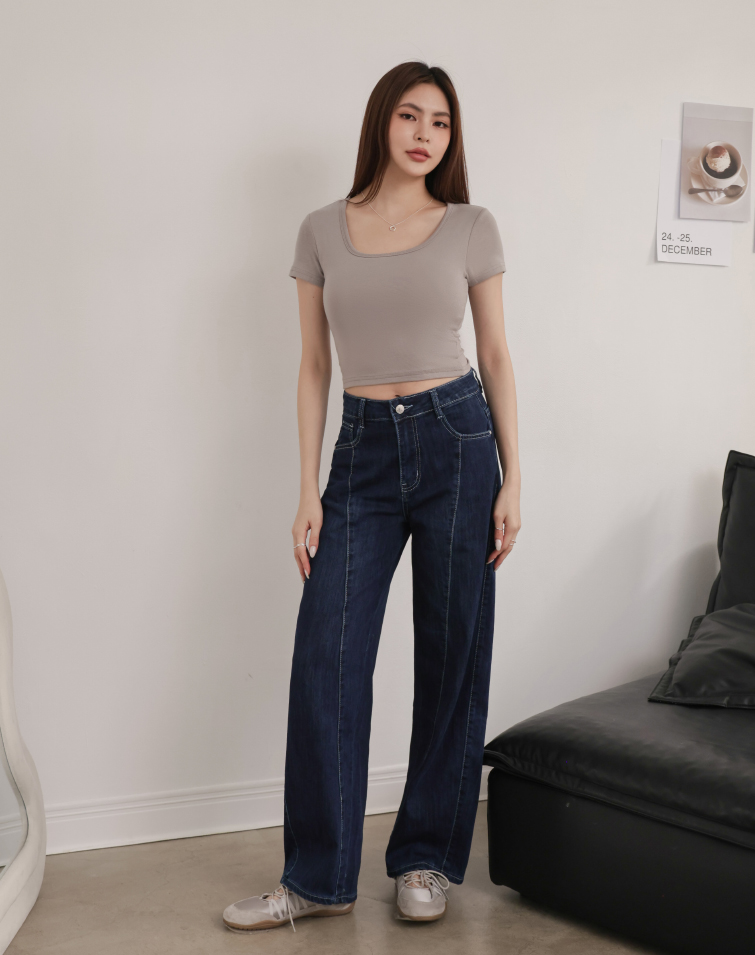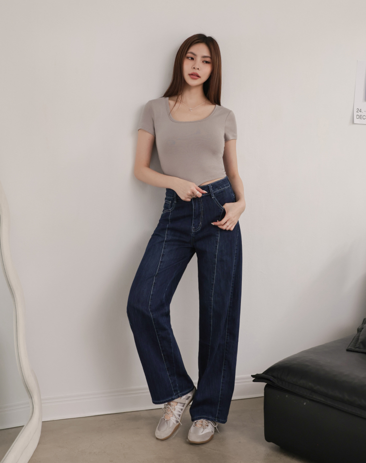 Front & Back Pockets / Slimming Seams / Soft Denim