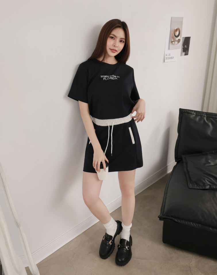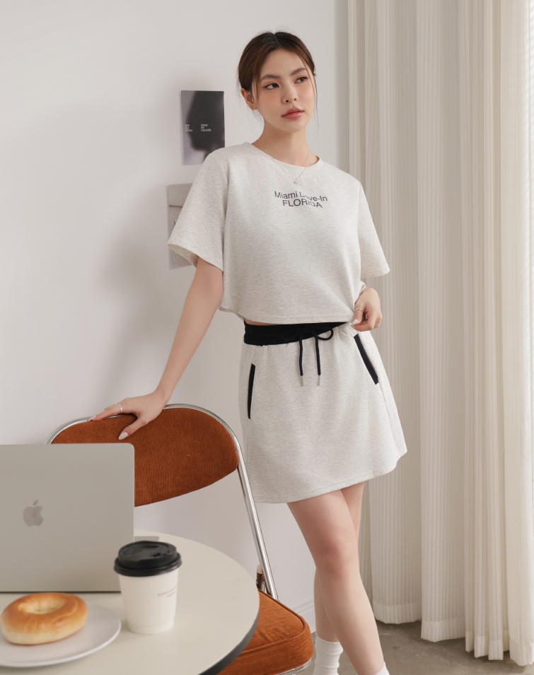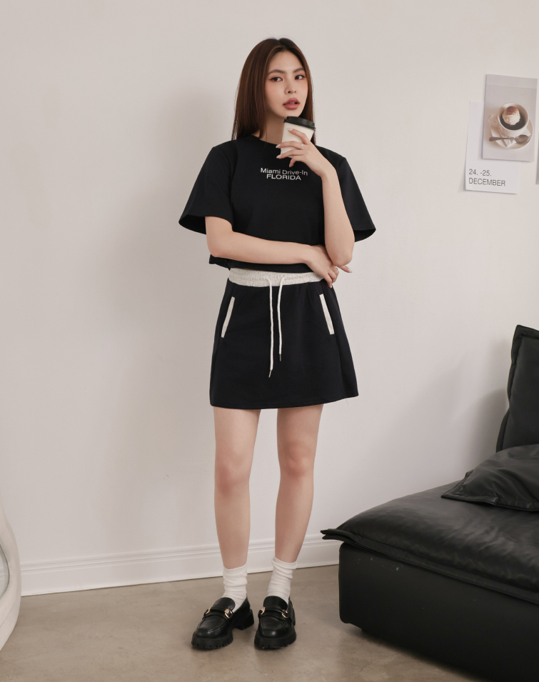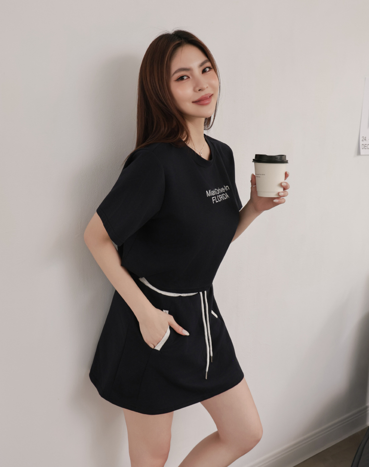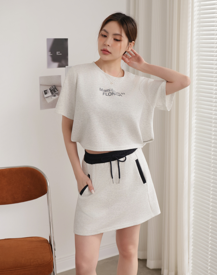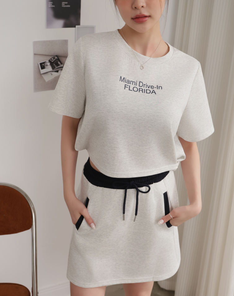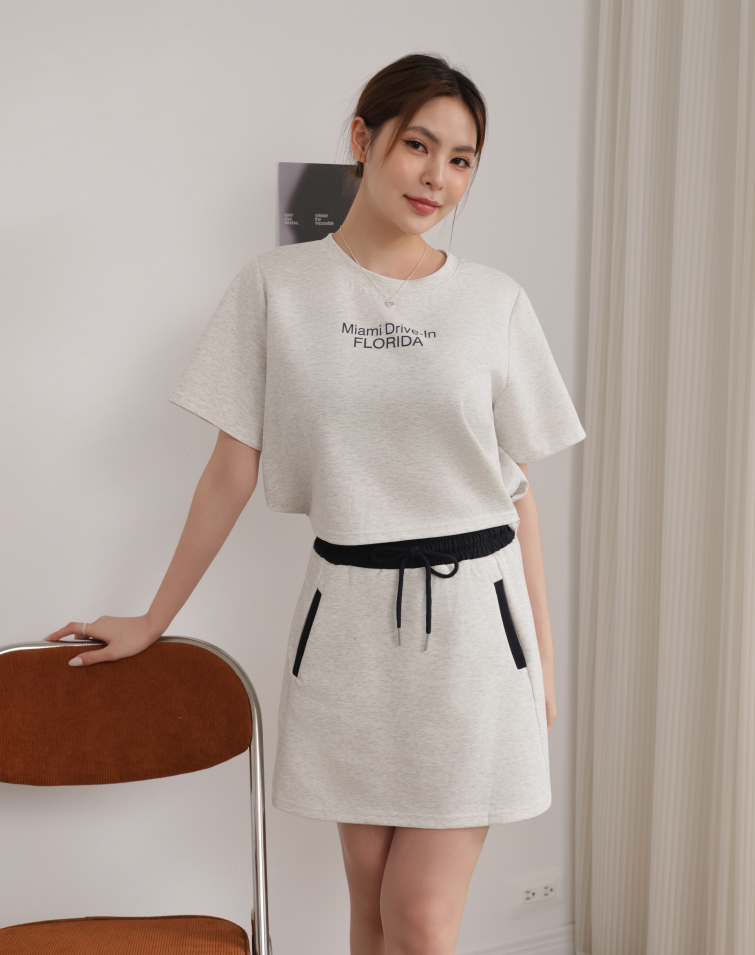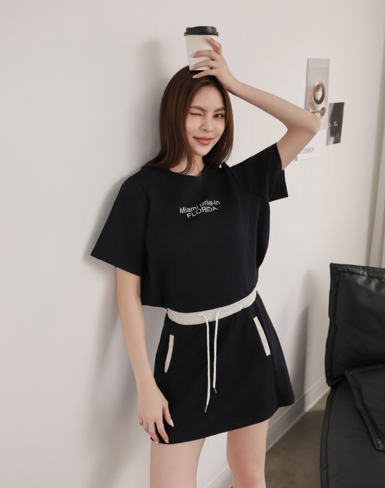 Top: Textured Lettering / Side Button Hem / Wear Separately